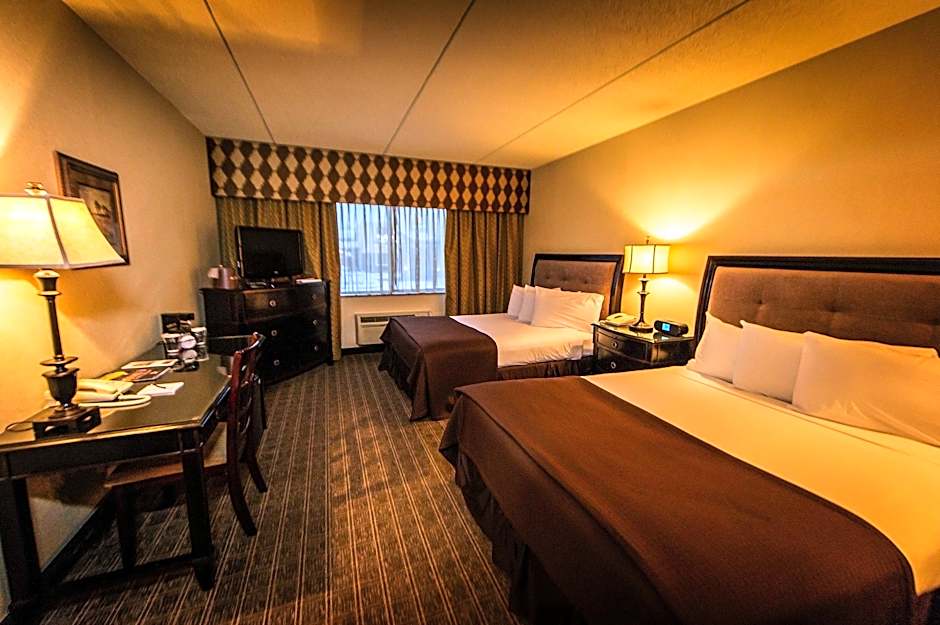 Featuring a 32-inch flat-screen TV and a large desk, this room offers an private bathroom with a granite vanity area and a walk-in shower.